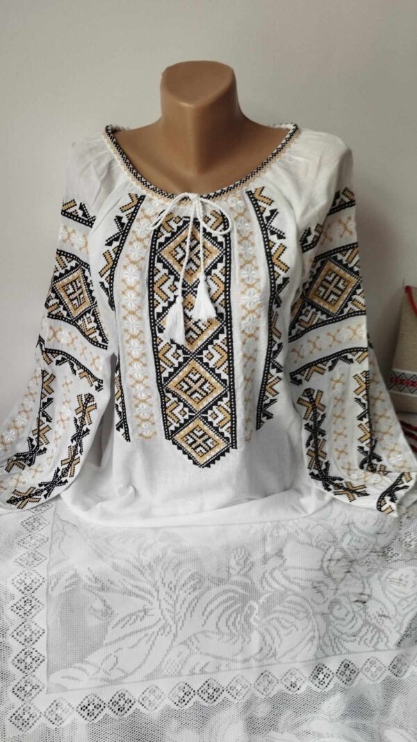 Ie dama,din bumbac,cu model geometric, bej cu negru